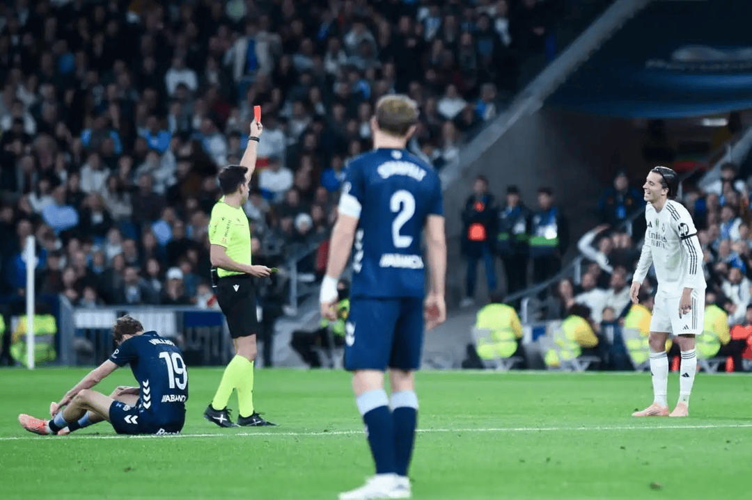 ใบแดงสมควรแล้ว! ตำแหน่งฟรีคิกของเรอัล มาดริดขยับไปข้างหน้าหนึ่งสนามหญ้า คาร์เรราสบ่นผู้ตัดสินอย่างรุนแรง ได้รับใบเหลืองหนึ่งใบและใบแดงอีกหนึ่งใบ2025-12-09